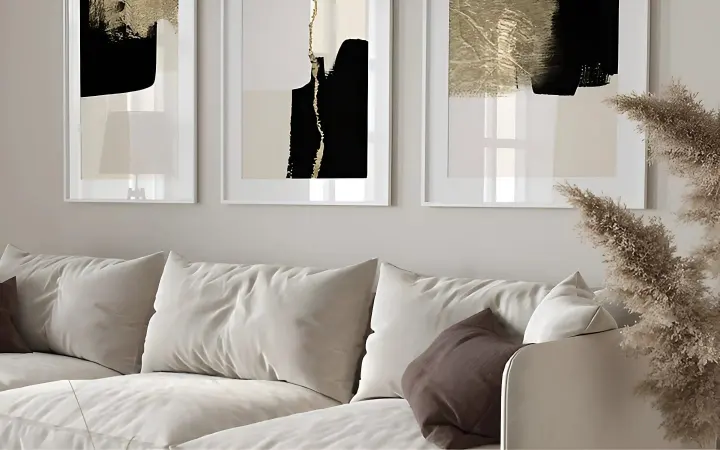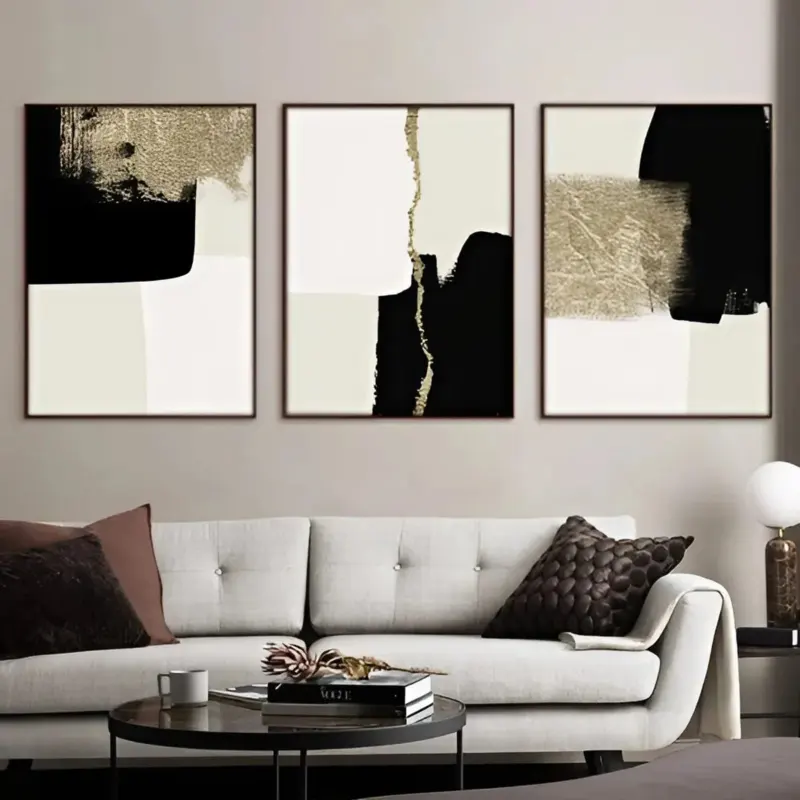 Um quadro decorativo grande e moderno dá vida à sua sala, tornando-a cheia de estilo e personalidade. Faça sua arte brilhar!