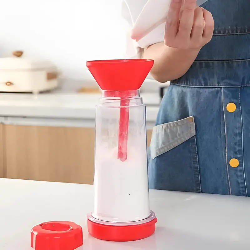 Chega de desperdiçar massa! A peneira rotativa espalha por igual e evita erros. Um giro, zero bagunça e economia real desde o início.